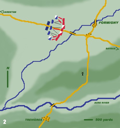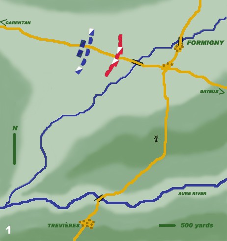 To the South of the Cherbourg peninsula there were two French armies preparing to engage the English. The Count of Clermont was at Carentan, 20 miles west of Bayeux and 30 miles south of Cherbourg with a force of some 3000 men.